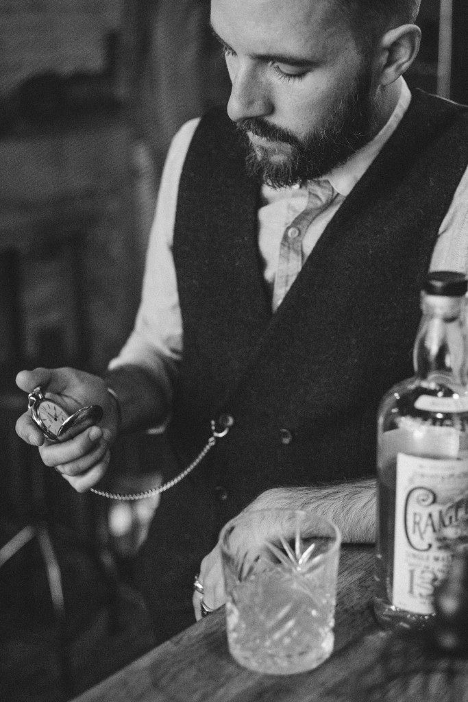 Manteau Devred, costume ASOS, gavroche ASOS, chaussures Emling, Montre à gousset Tissot